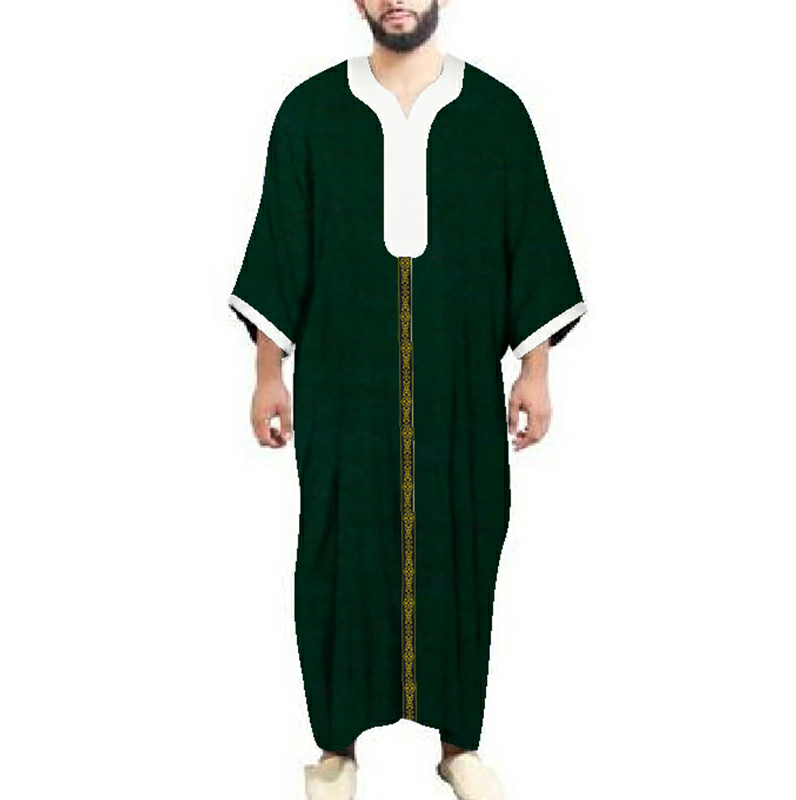 Thobe uni à manches longues pour hommes musulmans, vêtements islamiques, Kaftan saoudien pour hommes, cadeau de l'Aïd Ramadan, Thobe personnalisé respirant