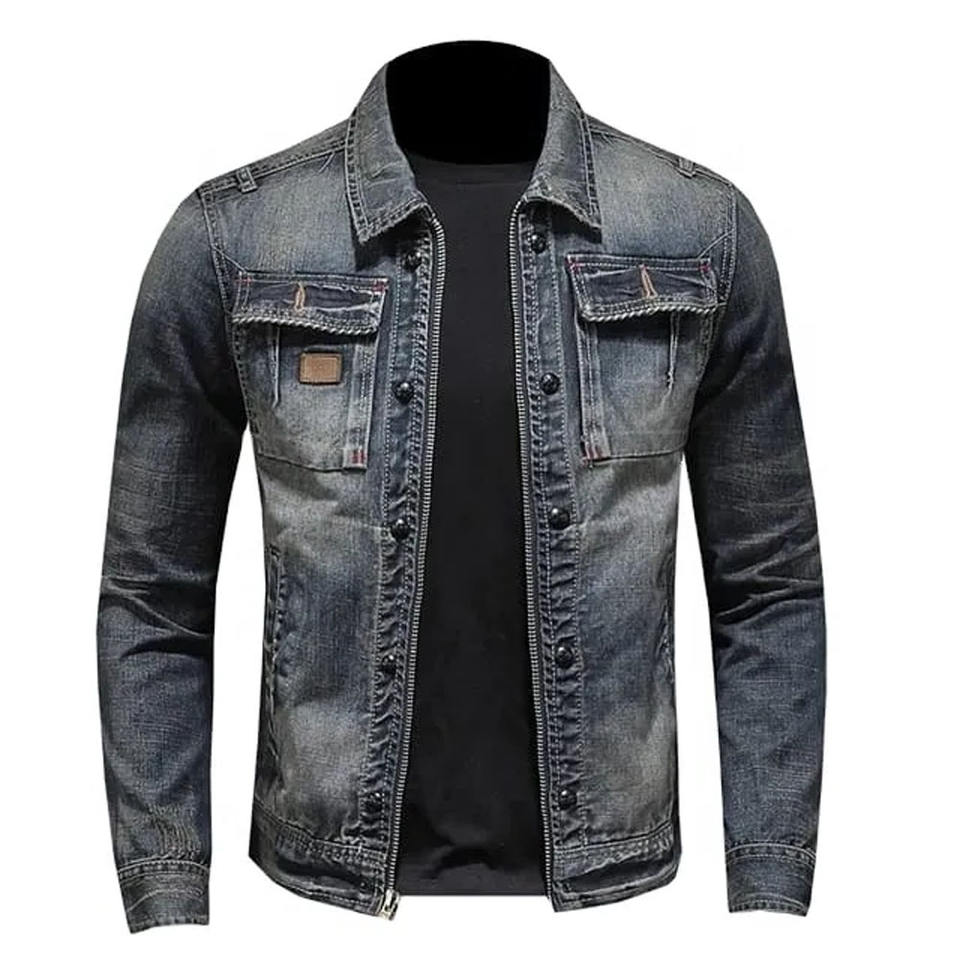 Veste en jean pour homme, couleur unie, nouvelle mode, confortable, 100% coton, vêtements décontractés, streetwear d'hiver, logo sur le devant, poches, service OEM
