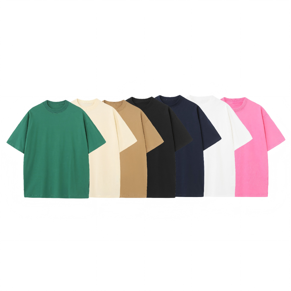 Solid Color Pattern Custom Printed 100 % Cotton T Shirt 270gsm Thick Fabric Casual Summer Long Short Sleeve T-shirt for men