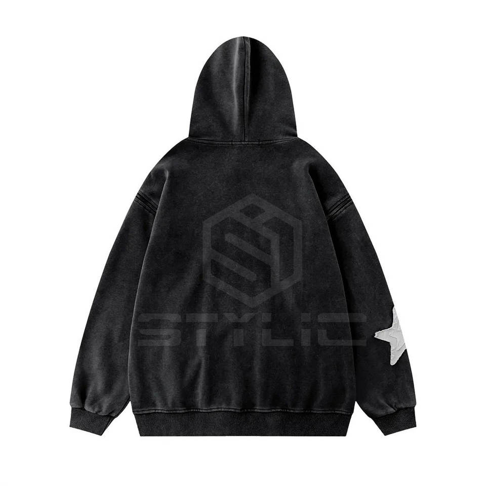 Nom du produit:Acide lavé en détresse broderie Hoodies