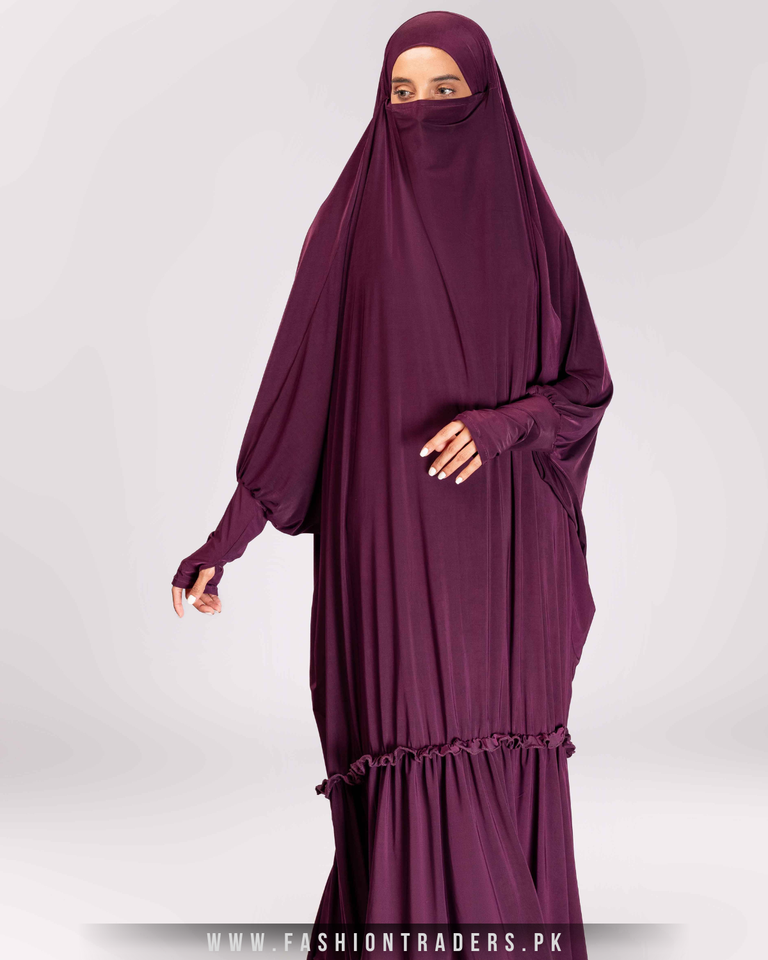 Product name:ONE PIECE RUFFLE JILBAB WITH JERSEY SLEEVES