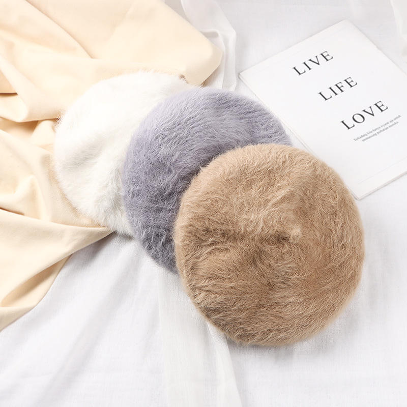 Chapeau béret couleur unie fourrure de lapin cheveux longs floue pour femmes femmes couleur unie Sports d'hiver Ski fête chapeau béret applicable