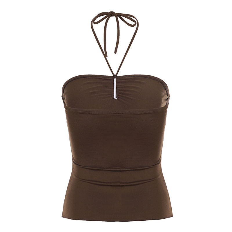 Haut tube à bretelles froncé de couleur unie avec dos à nouer, coupe ajustée, pour femme, idéal pour l'été