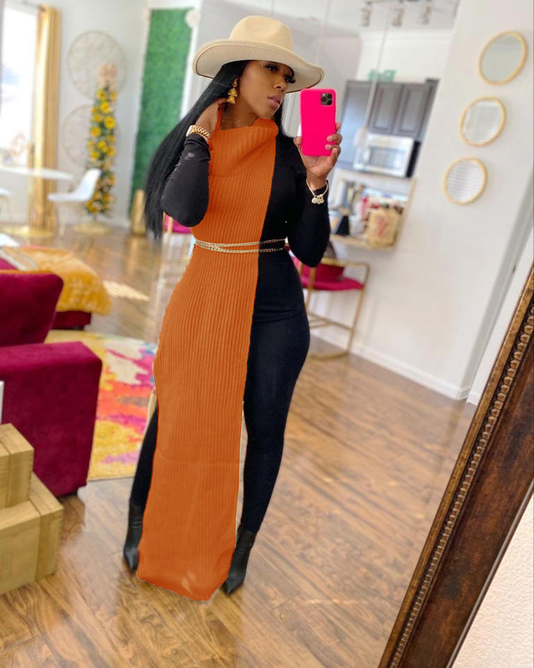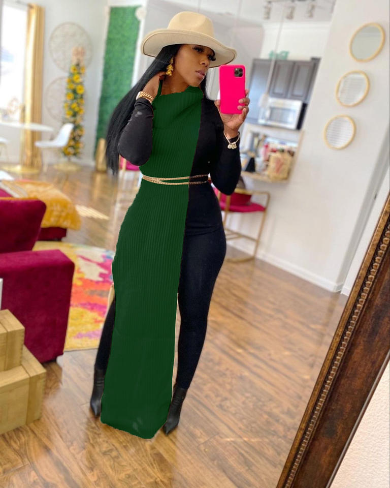 Pull de couleur unie tricot Boutique vêtements robes sans manches col roulé chemise haut Nigh Club forme porter fendu Sexy robe femmes