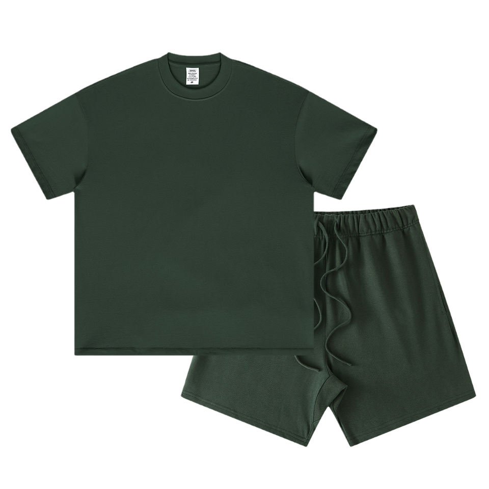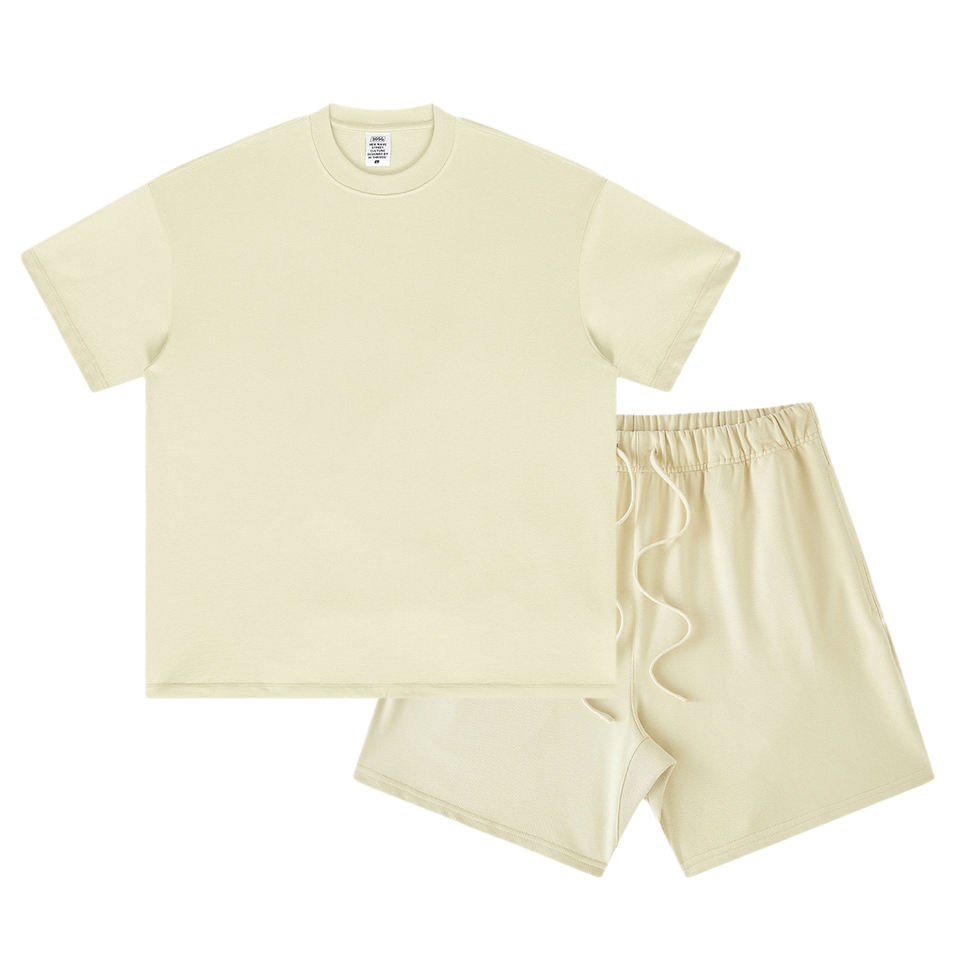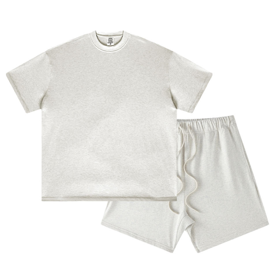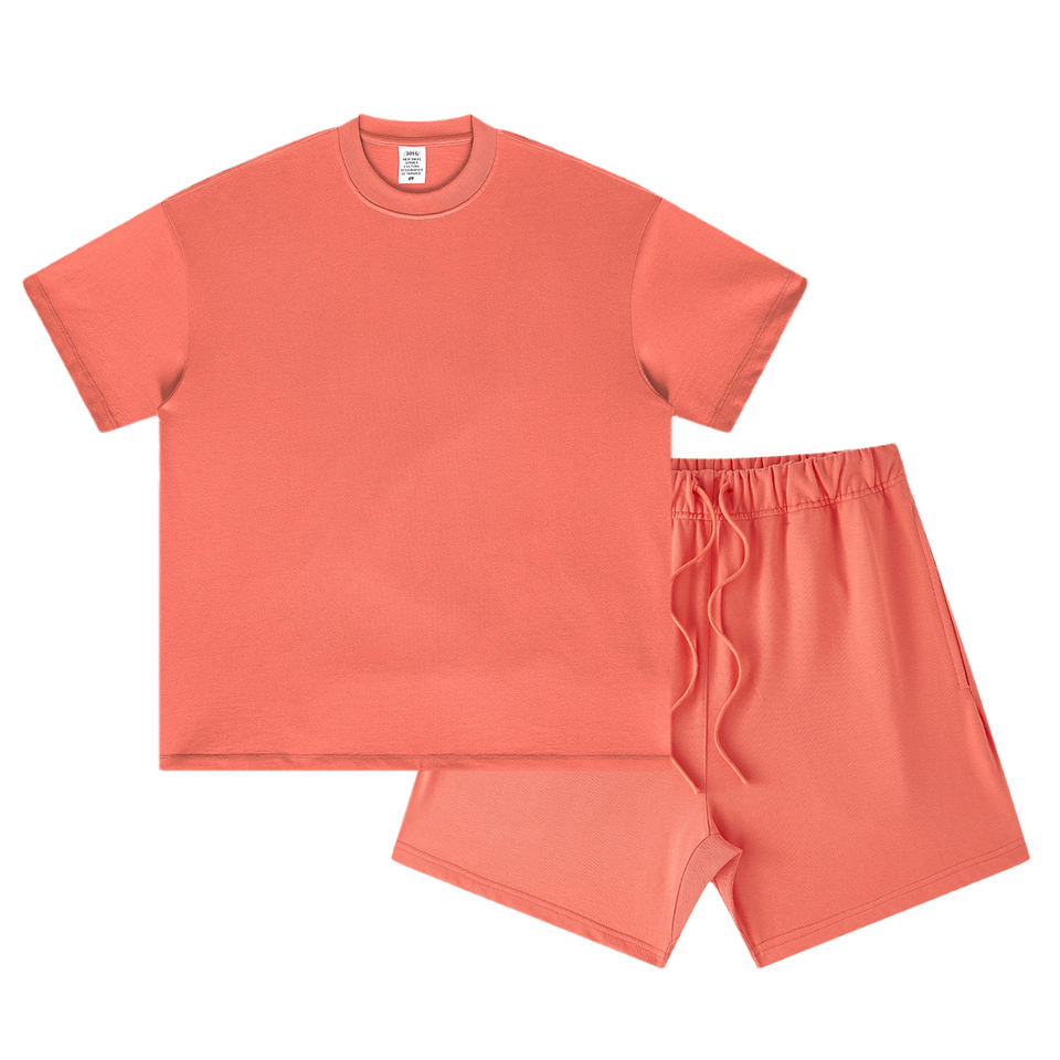 Ensemble 2 pièces homme t-shirt et short couleur unie, style oversize délavé, 100% coton, vente en gros