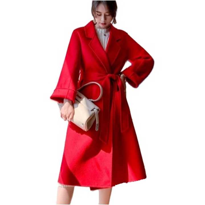 Manteau en laine pour femme, long manteau d'hiver couleur unie, style européen, trench-coat rouge