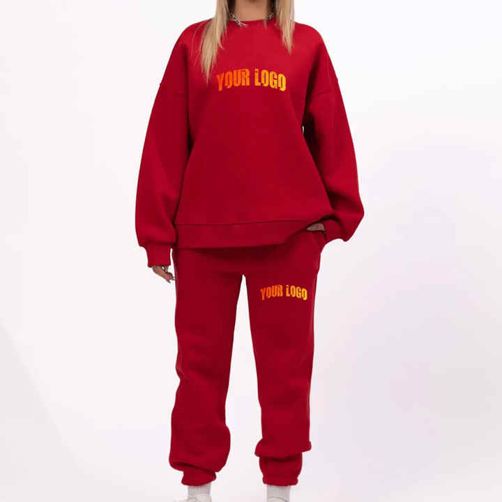 Survêtement long pour femme, couleur unie, décontracté, hiver, 100% coton, survêtement personnalisé, survêtement 100% coton