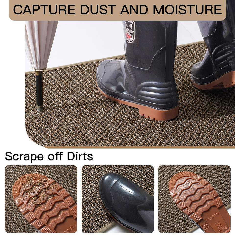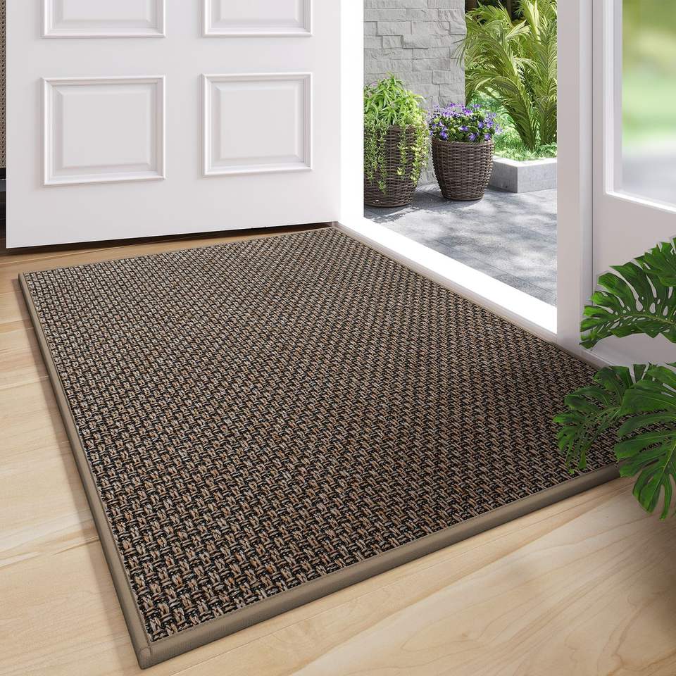 Paillasson rectangulaire uni à texture tissée, antidérapant, résistant à la saleté, pour entrée de maison, marron gris, en fibre de polyester