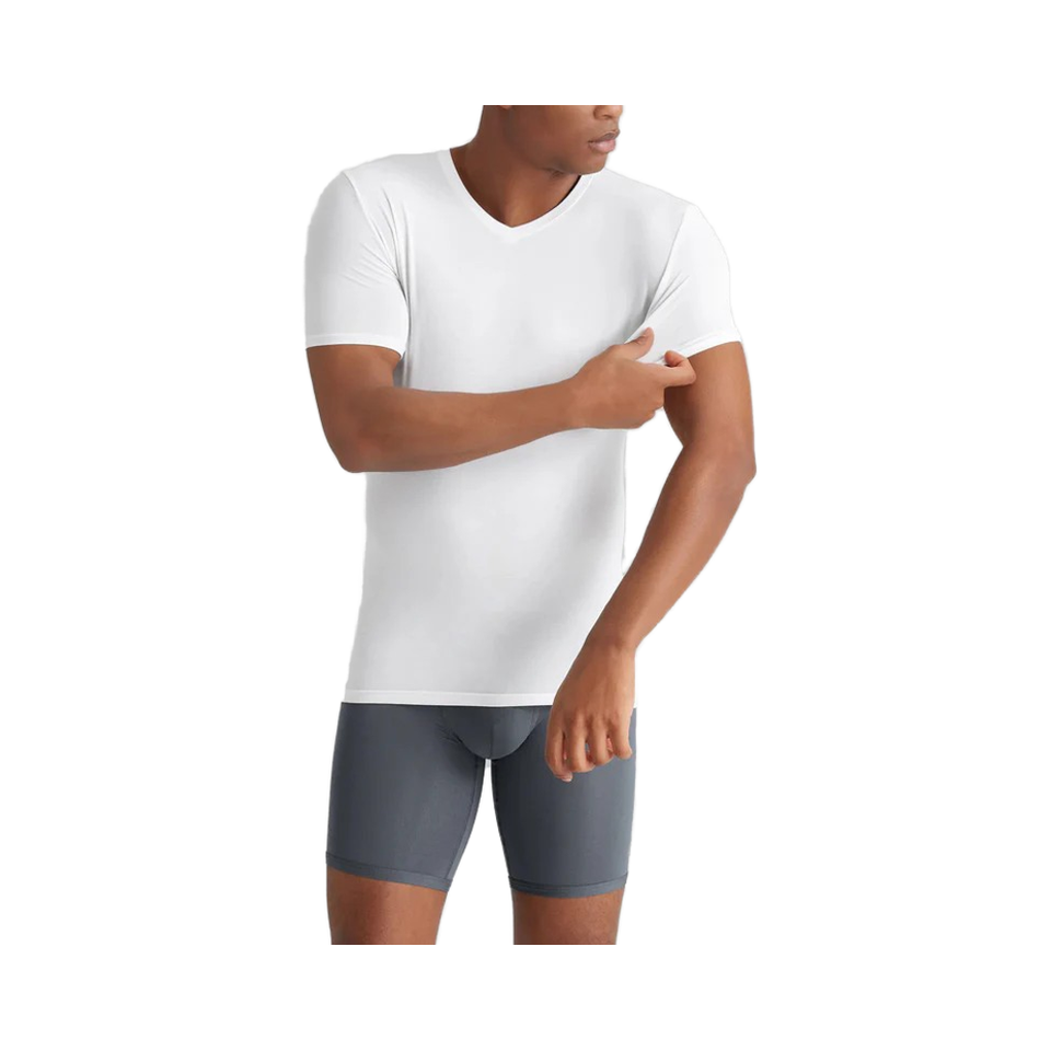Sous-vêtement thermique respirant à séchage rapide en polyester à col en V haut pour homme, compression solide, manches courtes, athlétique, été