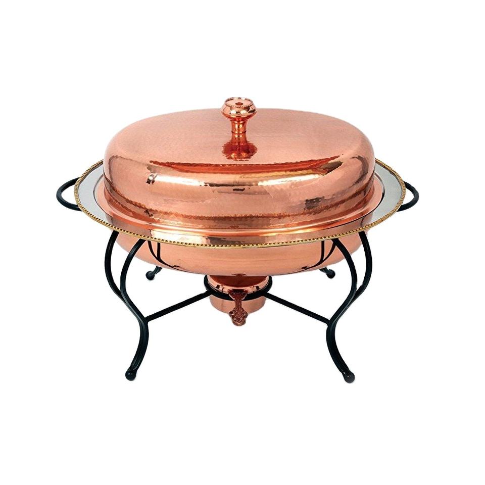 Chauffe-plat antique en cuivre massif avec support en fer noir pour hôtel et restaurant servant des plats Chauffe-plat