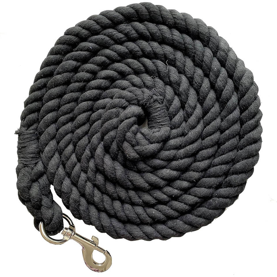 Corde de plomb en coton solide pour chevaux, 10 pieds de long x 5/8 pouces (16mm) d'épaisseur, corde faite à la main robuste avec noir remplaçable