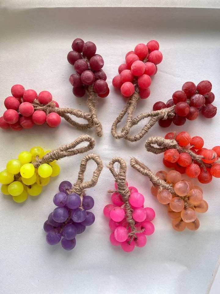 Savon transparent en forme de raisin, mignon et éclaircissant, sur une corde, pour le lavage des mains et le bain.