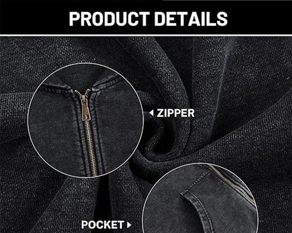 Sweat à capuche zippé avec logo personnalisé brodé, mode automne, streetwear tendance, délavé à l'acide, ample, 100% coton, pour homme