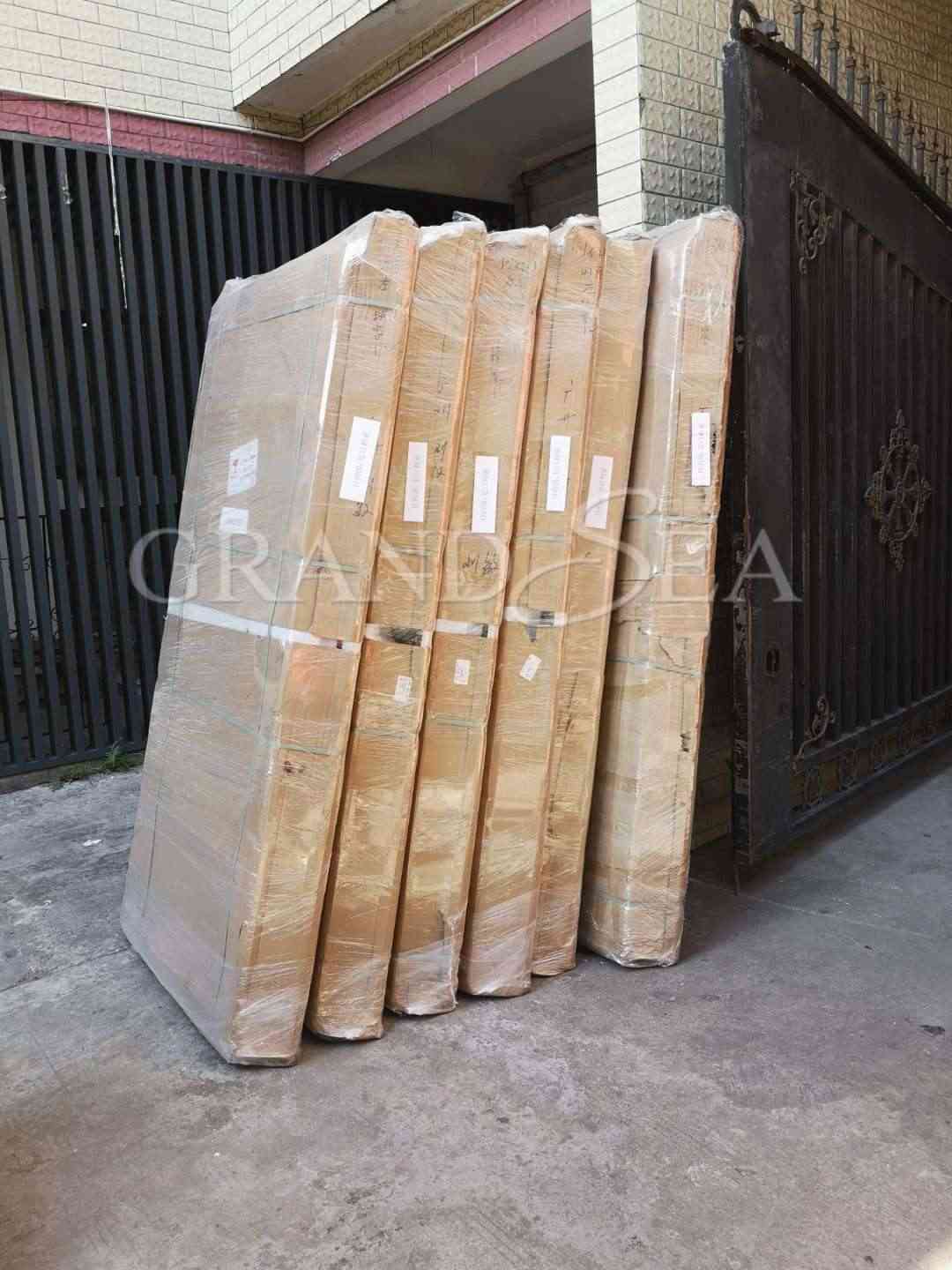 Film intérieur et emballage de mousse, extérieur avec boîte en carton
