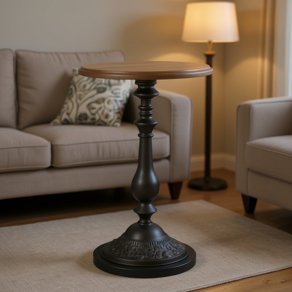 Table d'appoint en sapin massif de 15.7 po x 25.2 po, meuble de salon fabriqué à la main en brun