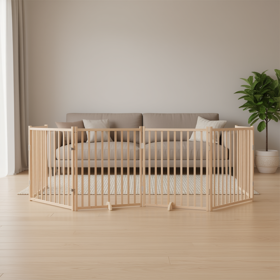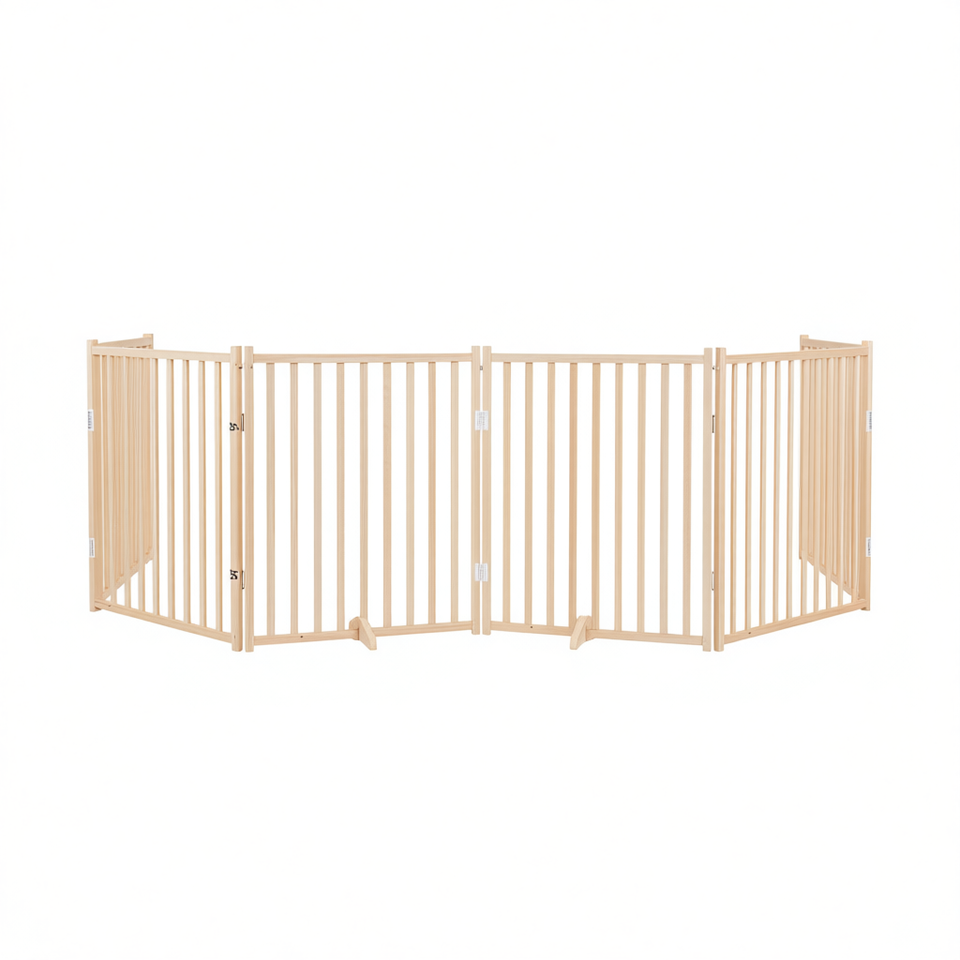 Ensemble de 4 barrières pliables rectangulaires pour animaux de compagnie en bois de sapin massif, enclos intérieur pour chien avec fermeture à bouton-poussoir