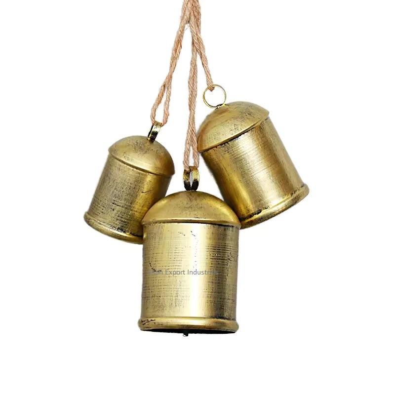 Cloches de vache en métal faites à la main avec son d'harmonie Nouveau design Cloches suspendues en corde de jute pour les vacances de Noël