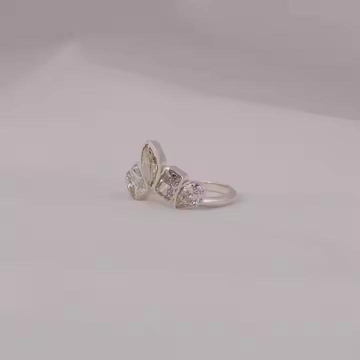 Bague Marquise en or massif avec cinq pierres, poire rayonnante, diamant cultivé en laboratoire, cadeau d'anniversaire unique, nouveau design certifié IGI