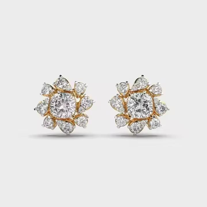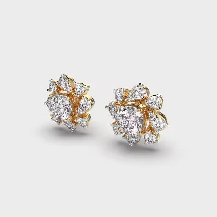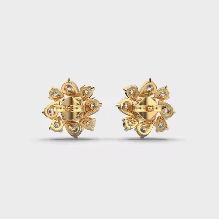 Boucles d'oreilles en or massif en forme de fleur, diamant de laboratoire taille ronde, prêtes à être expédiées par un fabricant indien