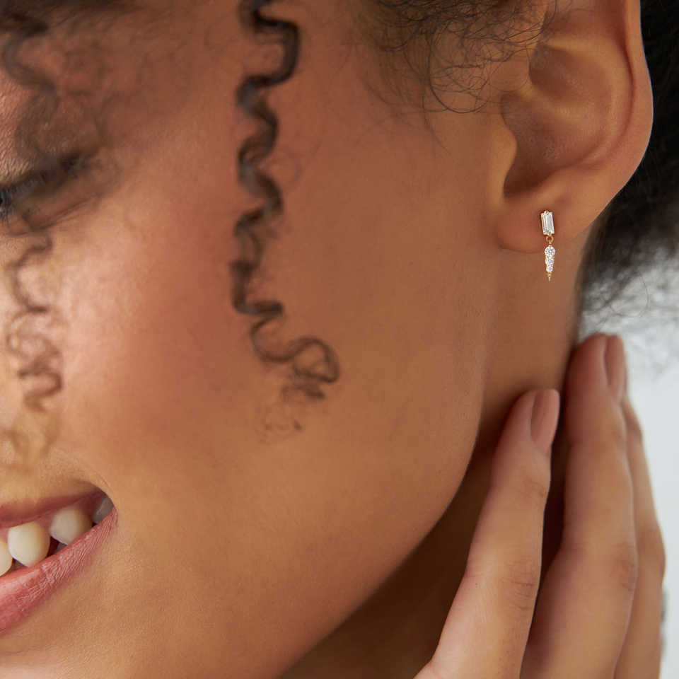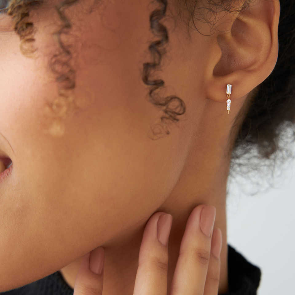 Boucles d'oreilles pendantes en or massif 18 carats avec diamant de laboratoire taillé en brillant Baguette à deux pierres Matériau principal Or Diamant Fine Jewelry