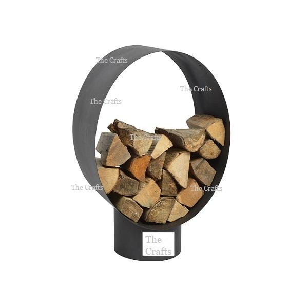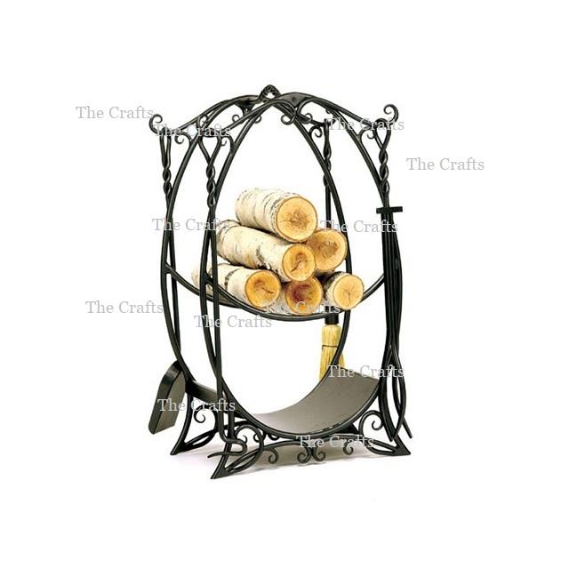 Support à bois de chauffage au design avantageux, fait à la main en fer noir, pour les foyers et les accessoires