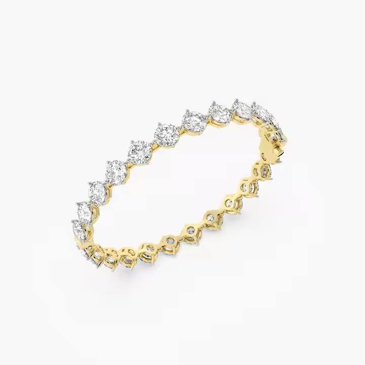Solid Lab Grown Round Cut Diamond Bangle in 14K Yellow Gold Moissanite Bracelets & Bangles