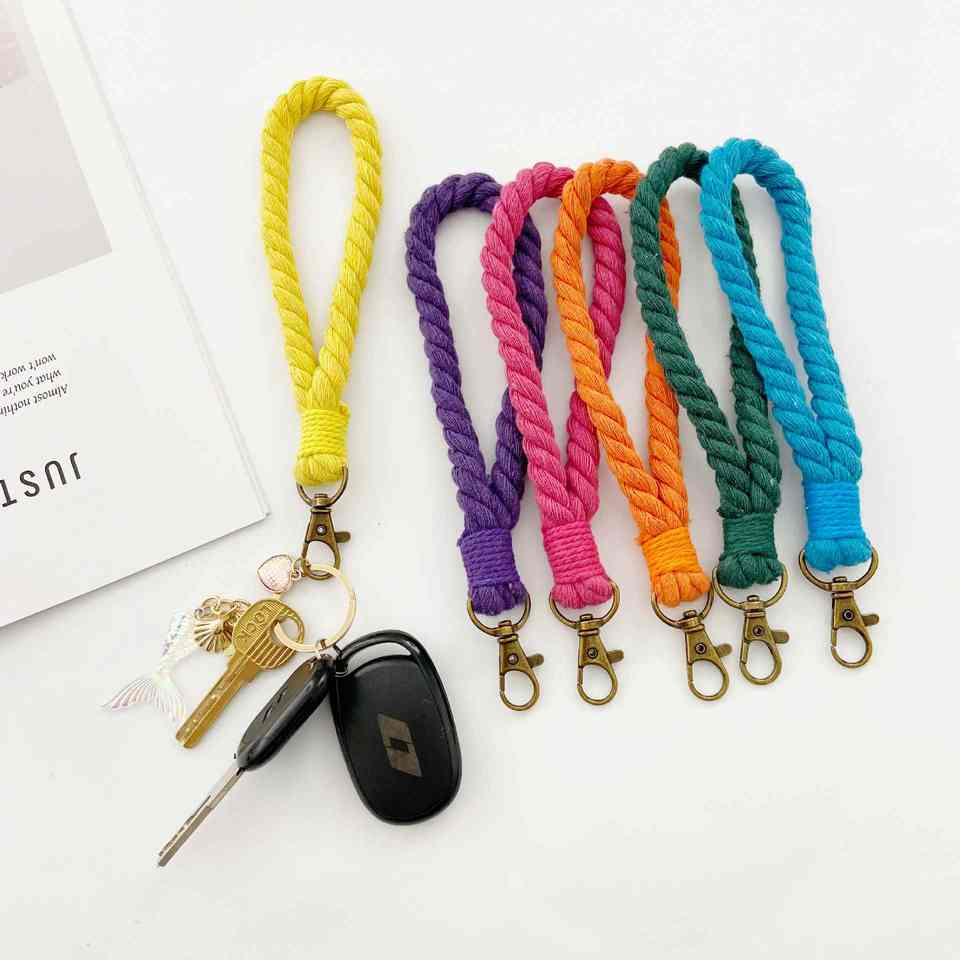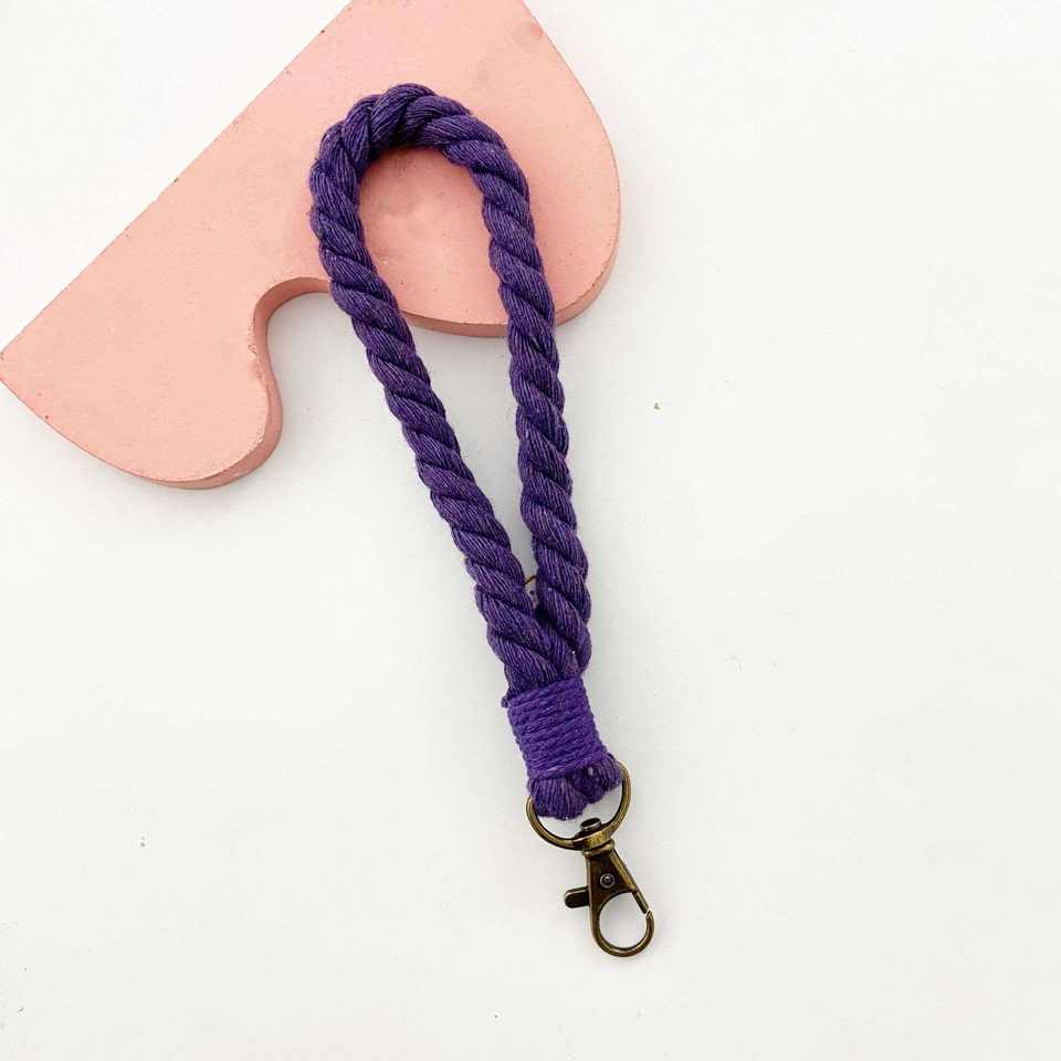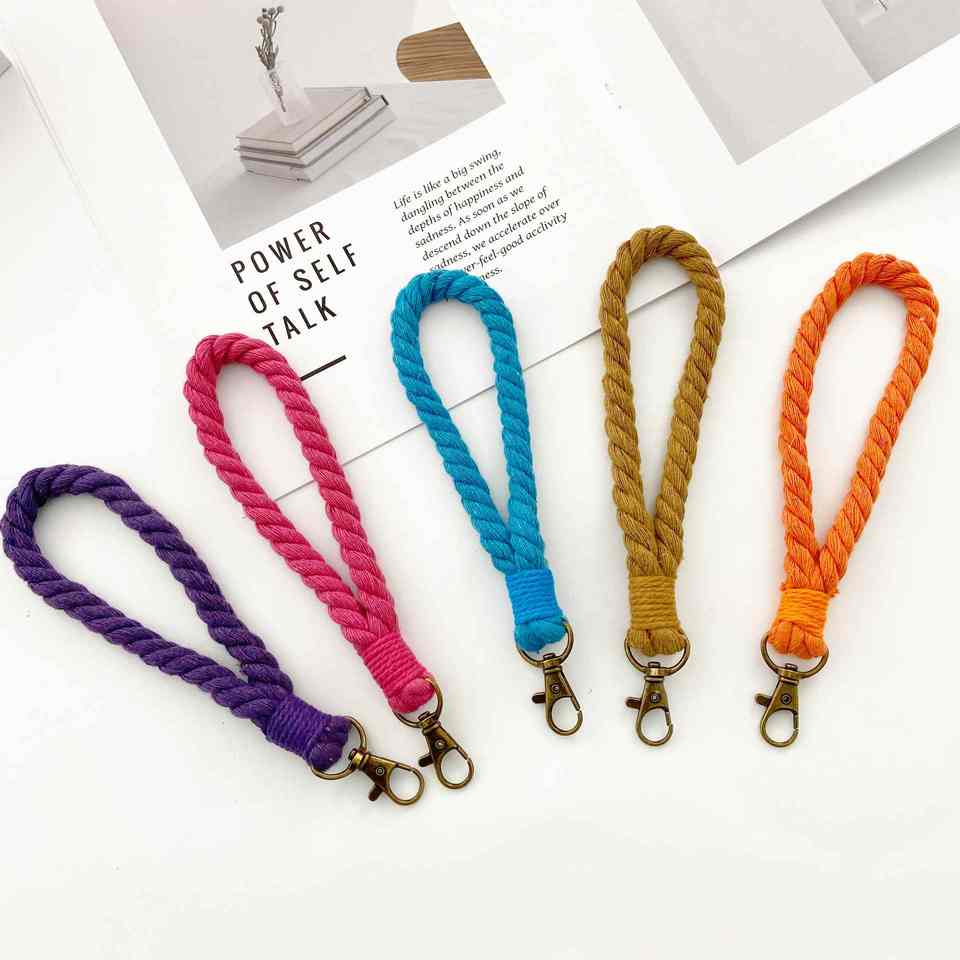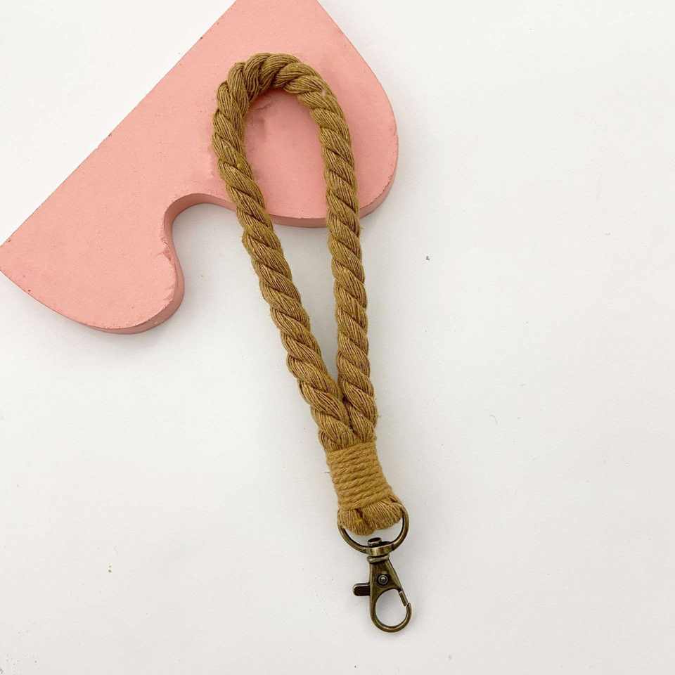 Dragonne porte-clés en coton tressé couleur unie, souple, avec crochet métallique, pour téléphone