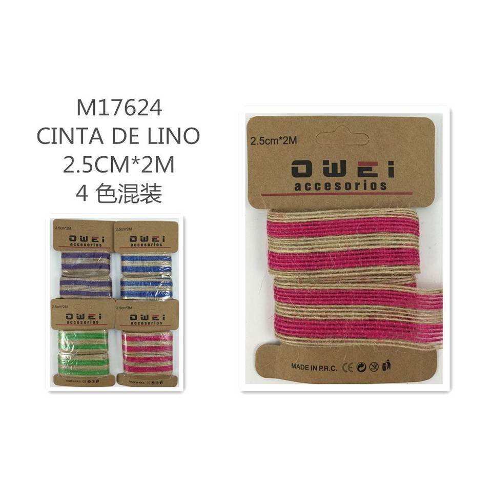 Rubans en lin solide 2.5cm de large 2m de long 12u/c bobine composée d'organza et de mousseline de soie