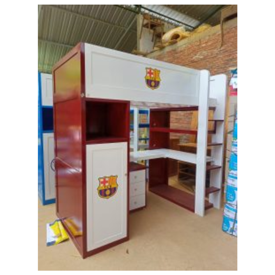 Lit mezzanine pour enfants en forme de L avec échelle et toboggan