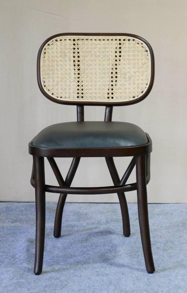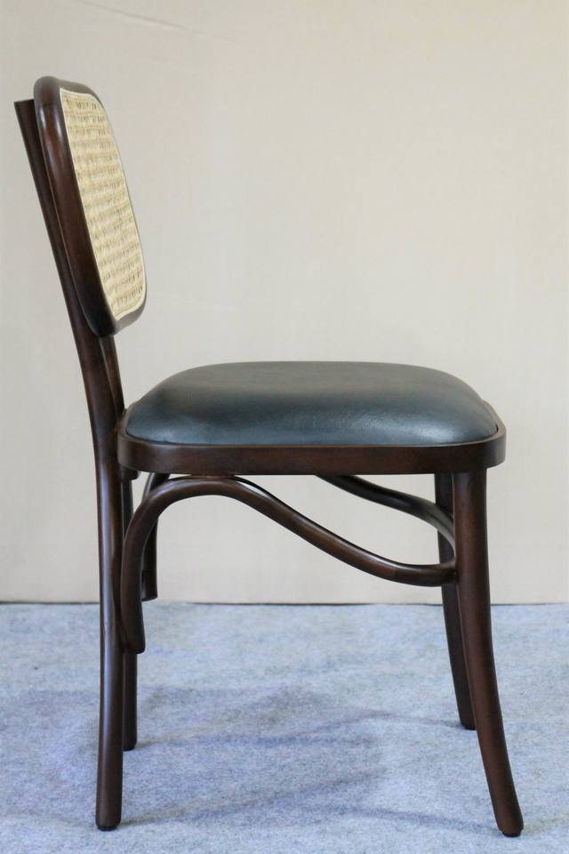 Chaise de salle à manger en bois de mahogany massif et rotin avec siège rembourré en cuir PU noir pour la maison, la villa, l'appartement et l'hôtel