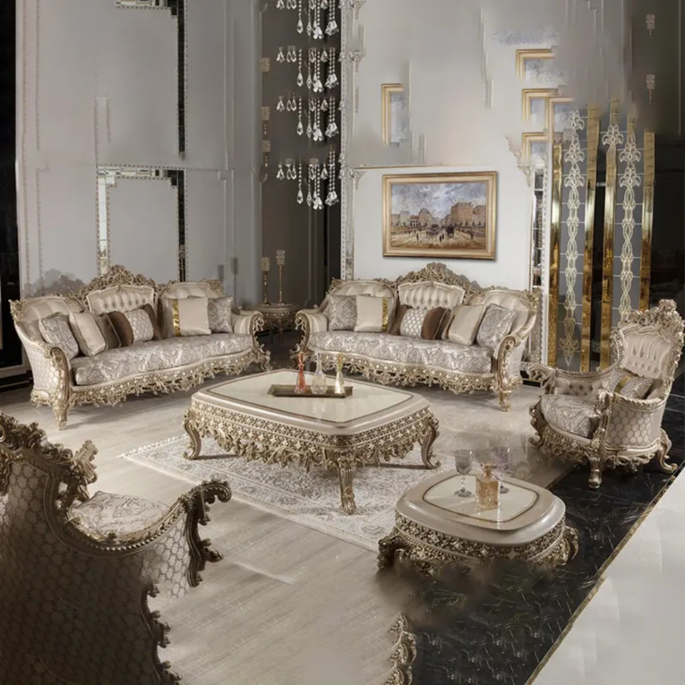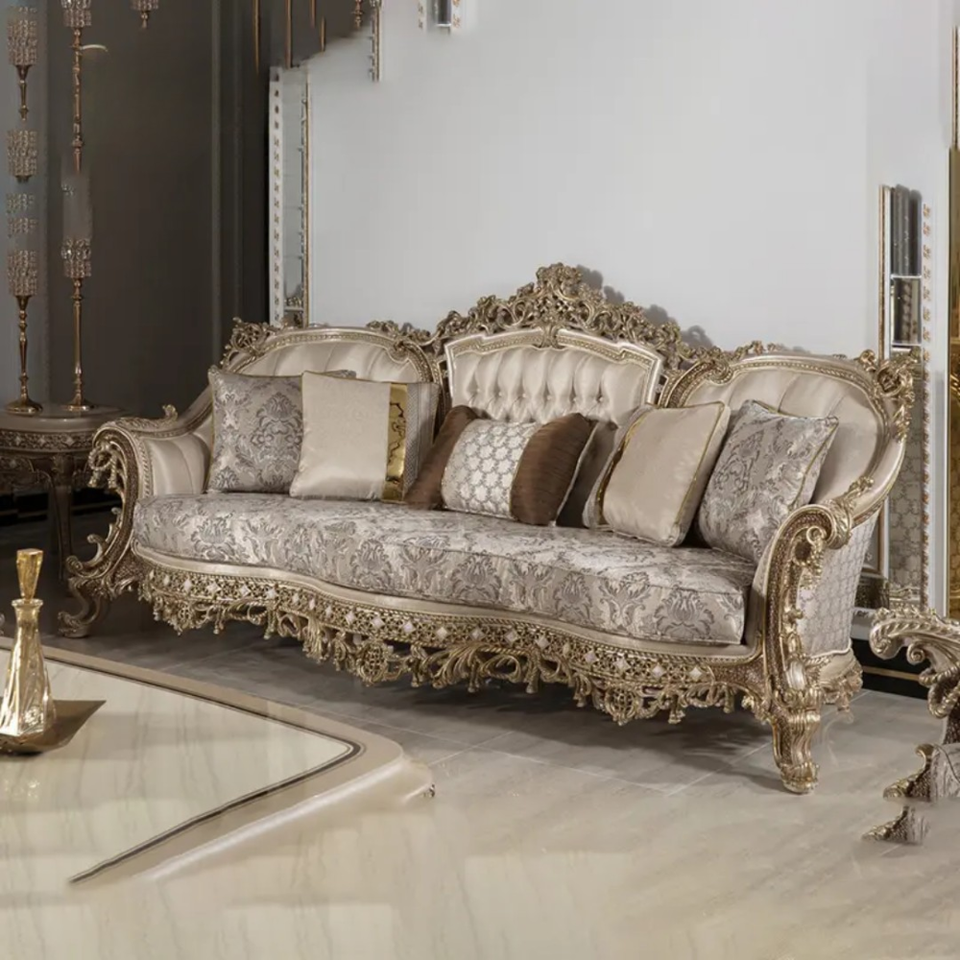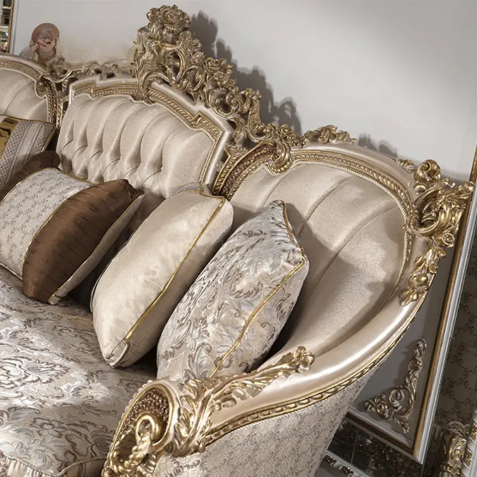 Ensemble de canapés de salon en bois de mahogany massif, design français carré, sculpté à la main, rembourré, mobilier de luxe pour appartement et villa