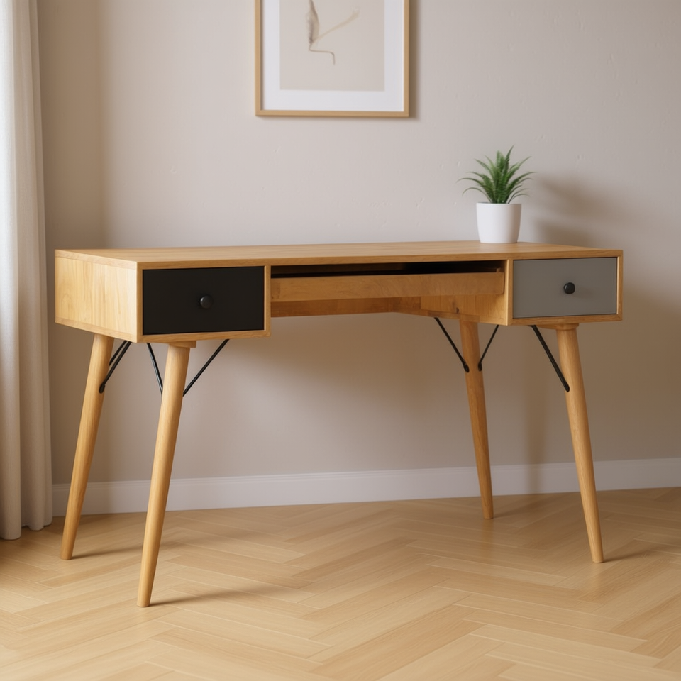Bureau d'ordinateur en bois de manguier massif 51,2x19,7x31,5 pouces avec tiroirs, mobilier de bureau à domicile