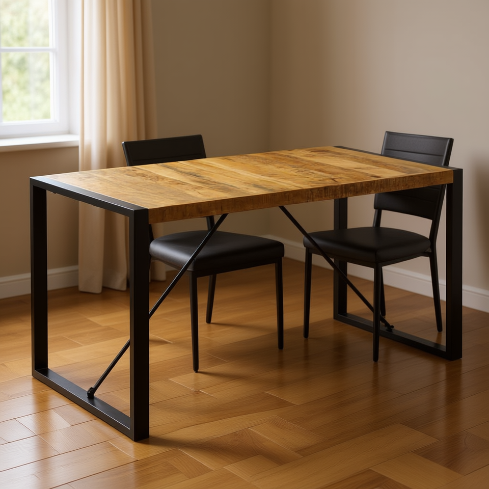 Table à manger en bois de manguier massif, 55,1x27,6x29,5 pouces, pieds en métal rectangulaires, design industriel moderne, meubles pour la maison