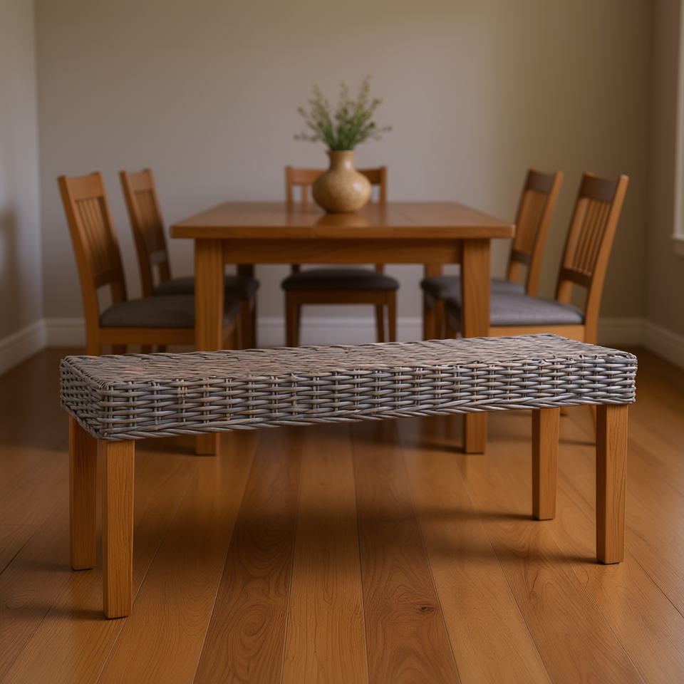 Banc en rotin Kubu gris en bois de manguier massif 43,3 pouces, meubles de salle à manger, design moderne