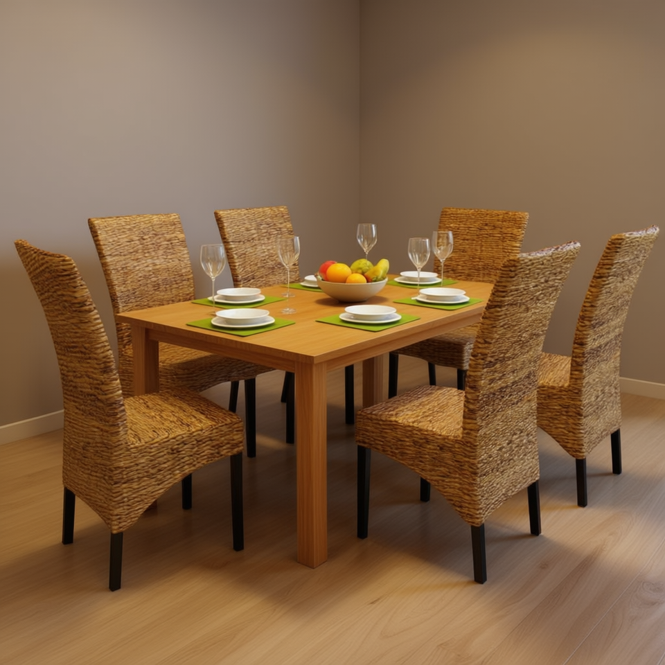 Ensemble de 6 chaises de salle à manger en bois de manguier massif et abaca, design rustique moderne, meubles de maison stables, couleur marron
