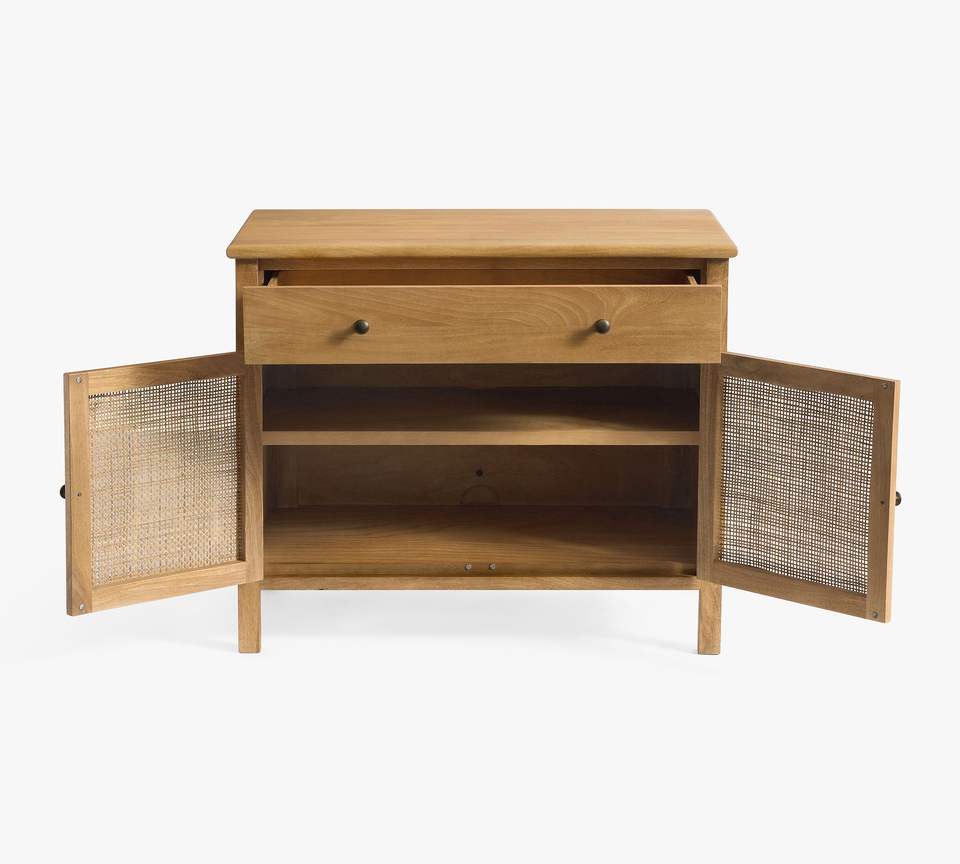 Armoire avec tiroir en bois de manguier massif et rotin Unité de rangement élégante et durable à double porte, parfaite pour la décoration du salon