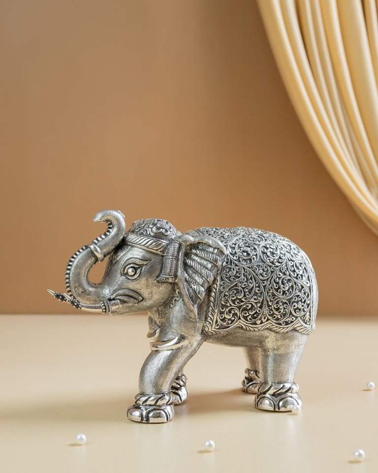 Statue d'éléphant en métal massif au design élégant, idéale pour le bureau et la décoration intérieure.