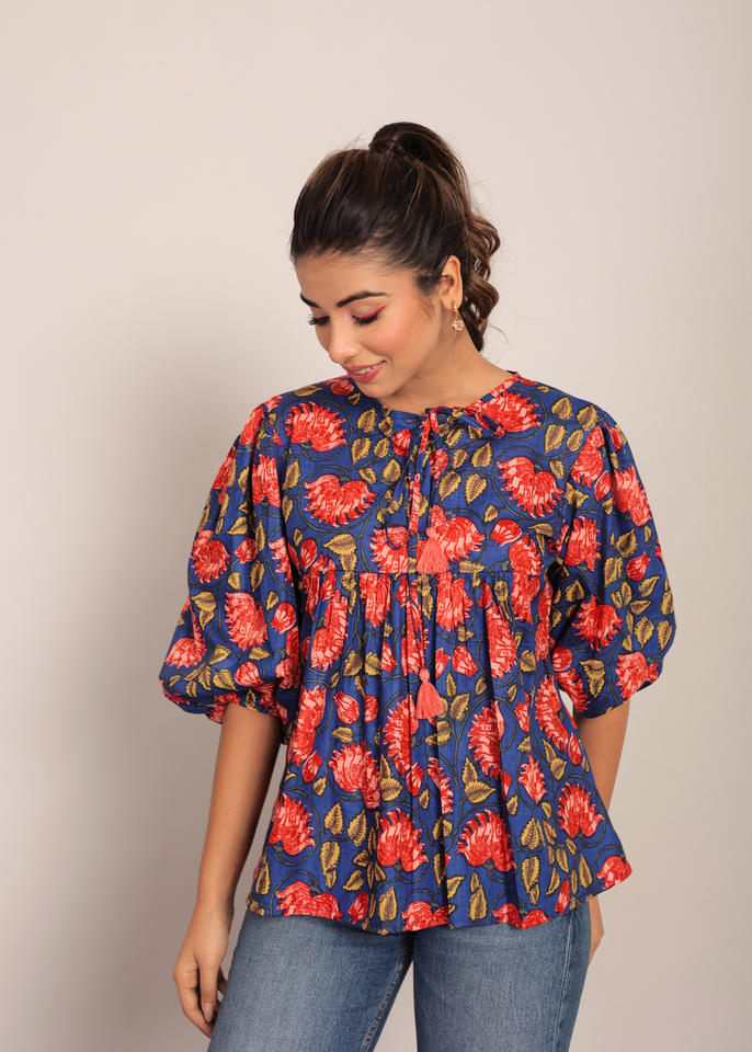 Haut d'été décontracté en coton à fleurs multicolores