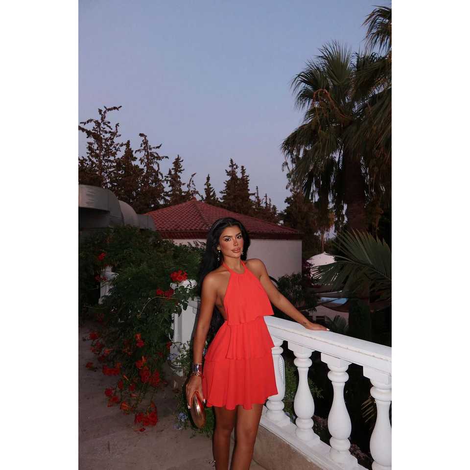 Robe Courte Orange Unie à Motifs Floraux avec Volants, Élégante, Coupe Empire, Grande Taille, Idéale pour Fêtes Formelles, Étudiants, Événements Quotidiens, Fermeture Éclair, XS