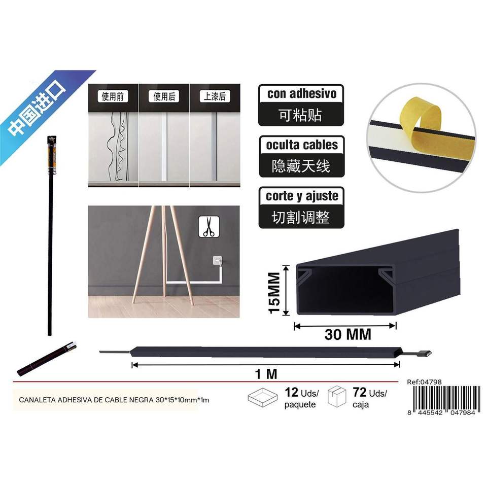 Solid PVC Black Adhesive Cable Duct 30x15x10mmx1m for Hardware and Cable Management