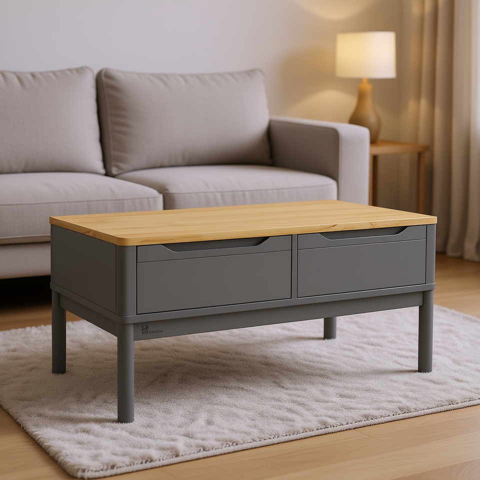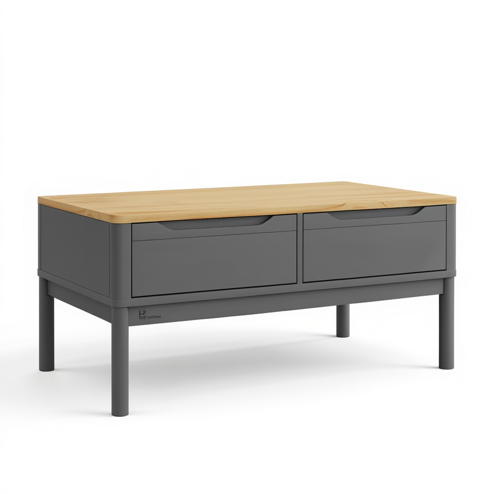Table basse grise en bois de pin massif 39 x 21,9 x 17,7 pouces avec tiroirs, design moderne pour la décoration de la maison