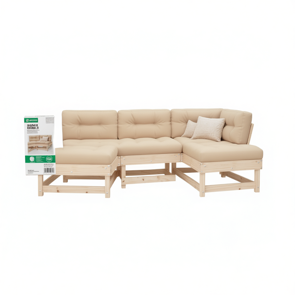 Ensemble de canapés de jardin modulaires en bois de pin massif, mobilier d'extérieur brun, design contemporain