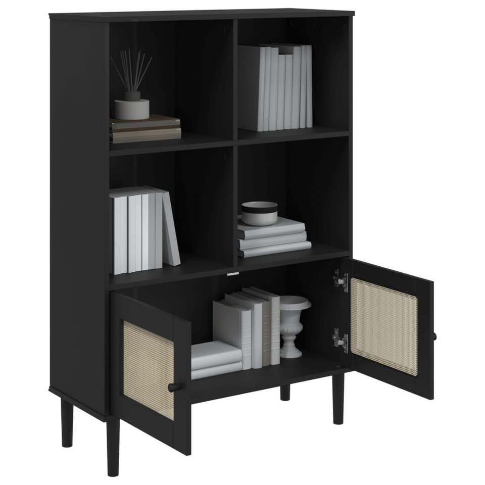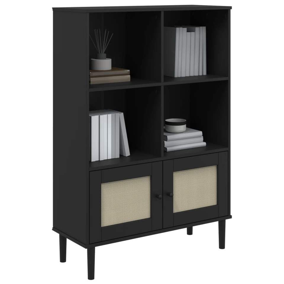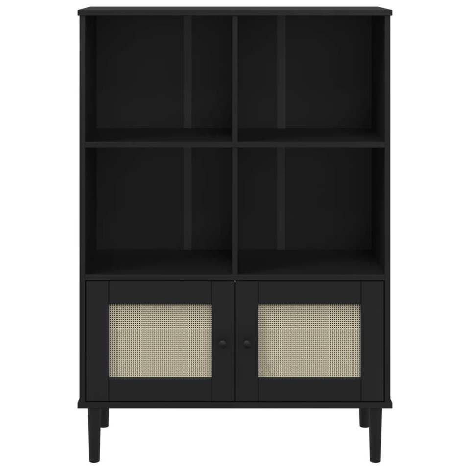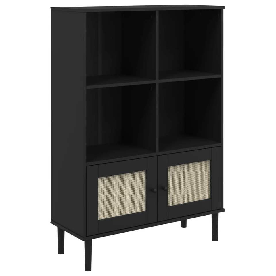 Bibliothèque rectangulaire moyenne en bois de pin massif noir - Mobilier élégant pour la maison