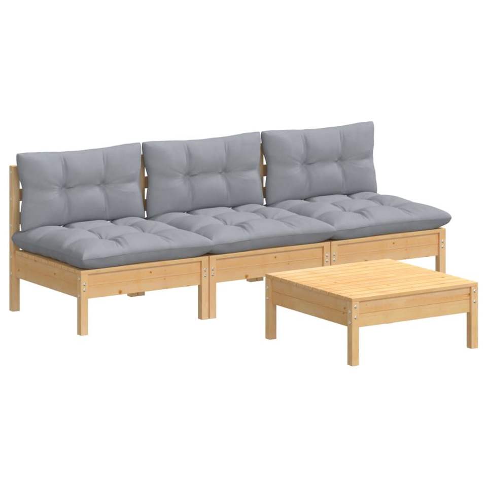 Ensemble de salon de jardin gris en pin massif 100% polyester Bois naturel 100% polyester 100% polyester 100% polyester