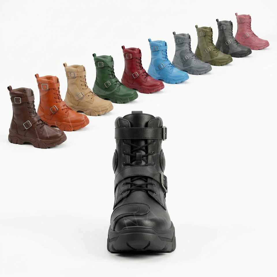 Bottes de moto en cuir couleur unie personnalisées, style personnalisé, bottines à boucle et lacets, chaussures de sécurité pour la conduite en extérieur