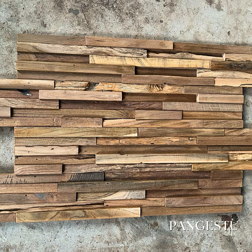 Dispositif:Infroissable, Antidérapant, Made from 100% solid reclaimed teak wood, Organic shape blocks with deep 3D rustic texture, Handcrafted by experienced artisans