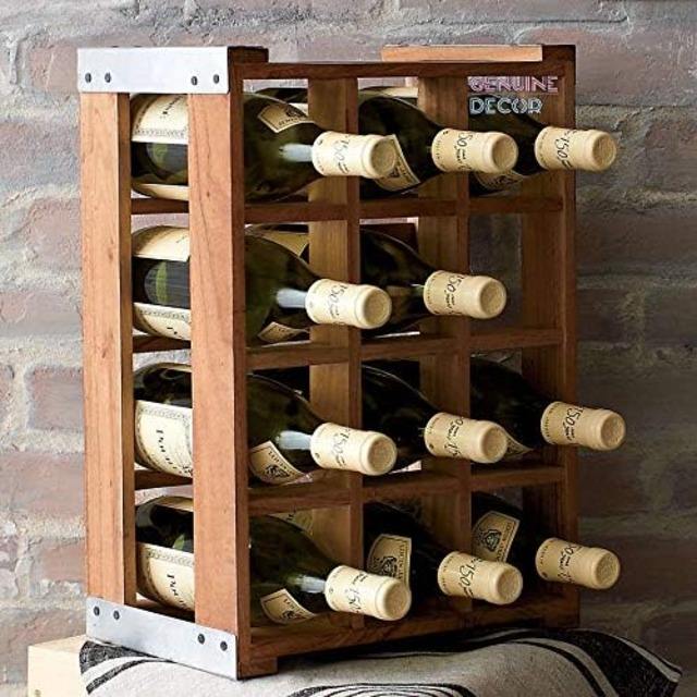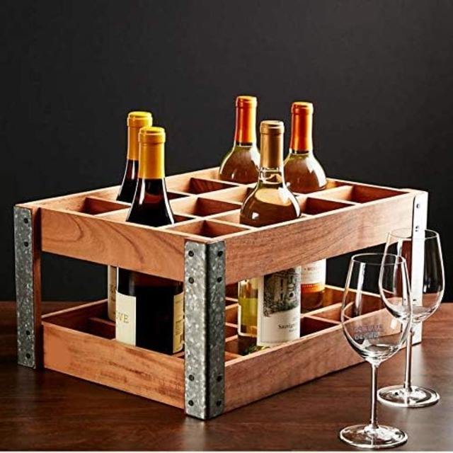 Casier à vin de comptoir en bois rustique massif pour 12 bouteilles Porte-vin de décoration intérieure pour cave de bar Meuble d'armoire de sous-sol