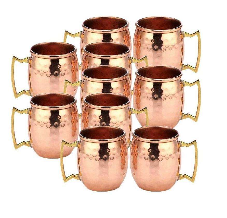 Tasse à bière Moscow Mule en acier inoxydable massif martelé avec placage de cuivre et poignée en laiton