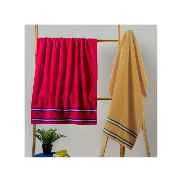 Solid StripesJacquard 28x56in 620GSM Cotton Bath Towel With Diamond Mesh Pattern & Anti Shed Texture Made In India Export Grade