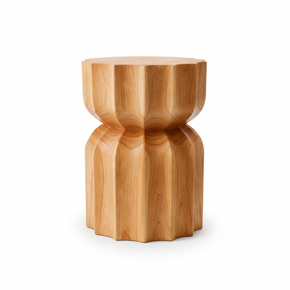 Tabouret à lattes en bois de Suar massif, écologique, design cylindrique cannelé moderne, qualité robuste, fait main, pour chambre et hôtellerie